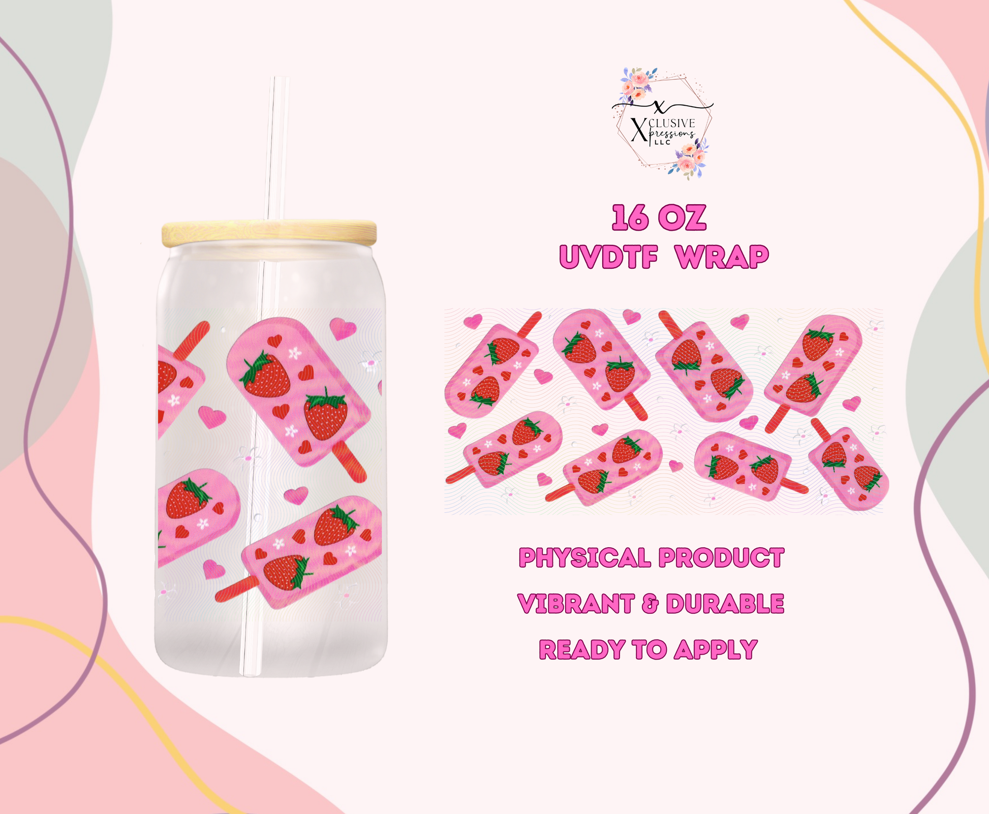 #1169 Strawberry Popsicle, Double-sided 16 oz UVDTF