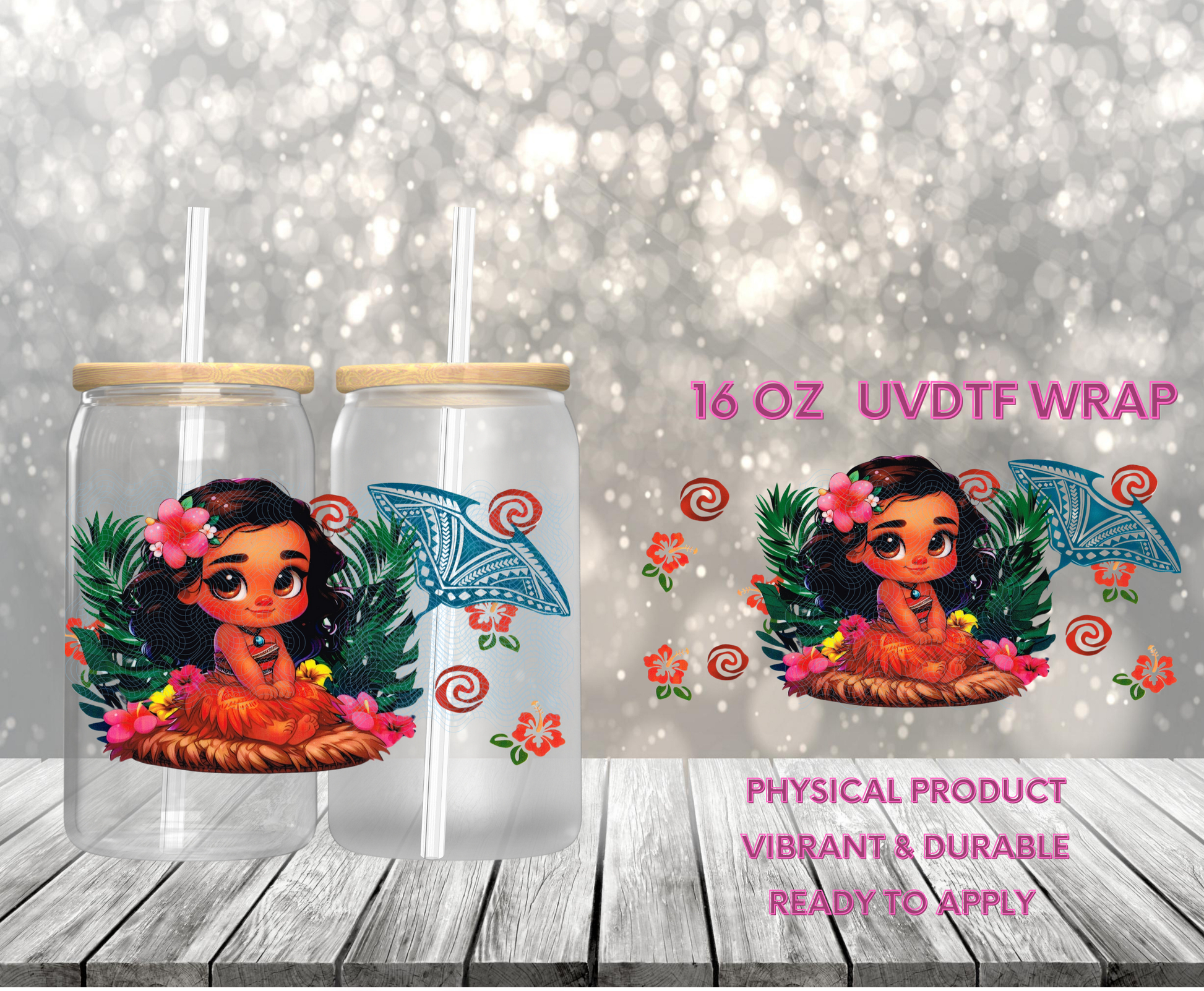 UVDTF cup wrap is sized to fit most 16oz glass cups.