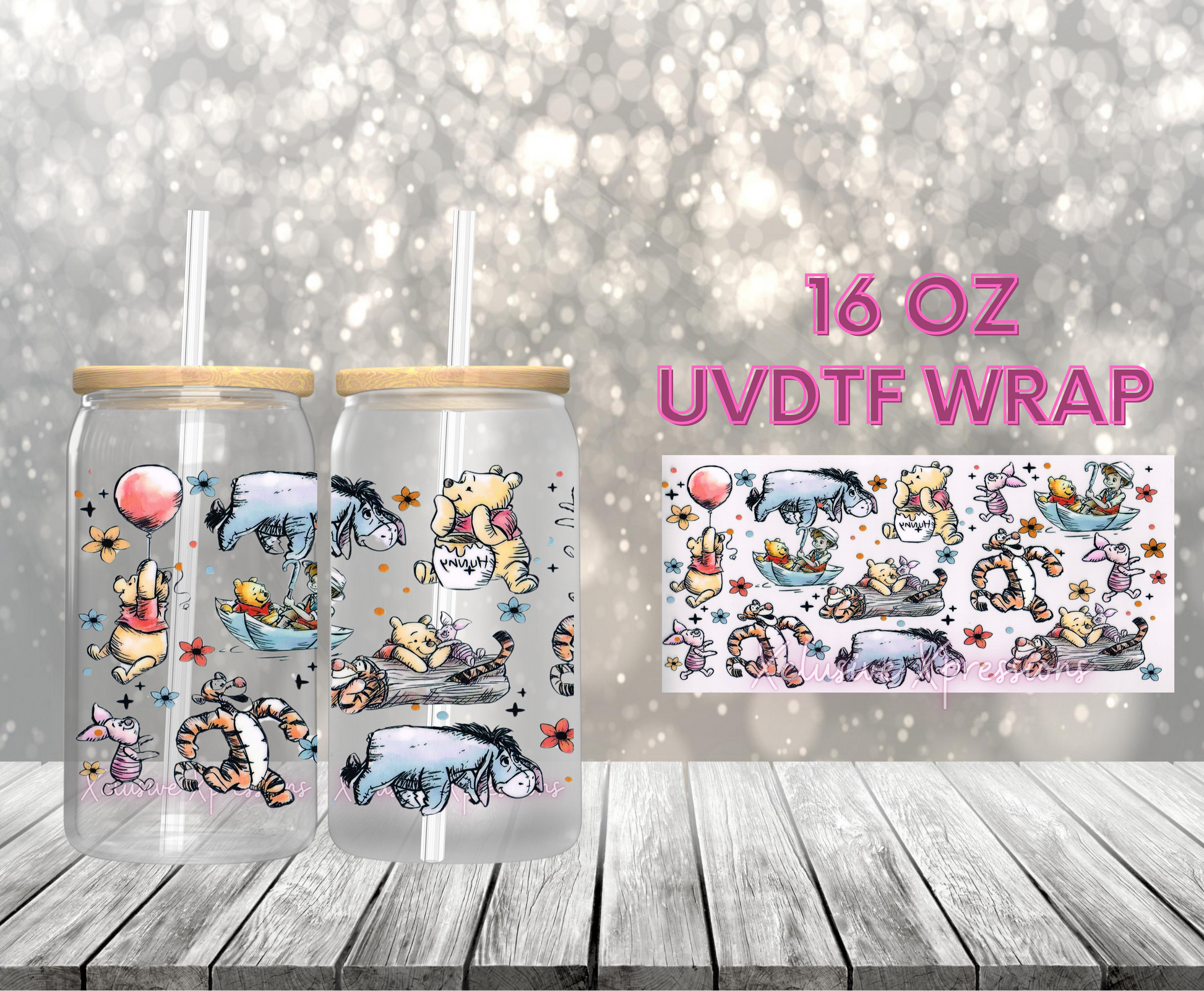 UVDTF cup wrap is sized to fit most 16oz glass cups.