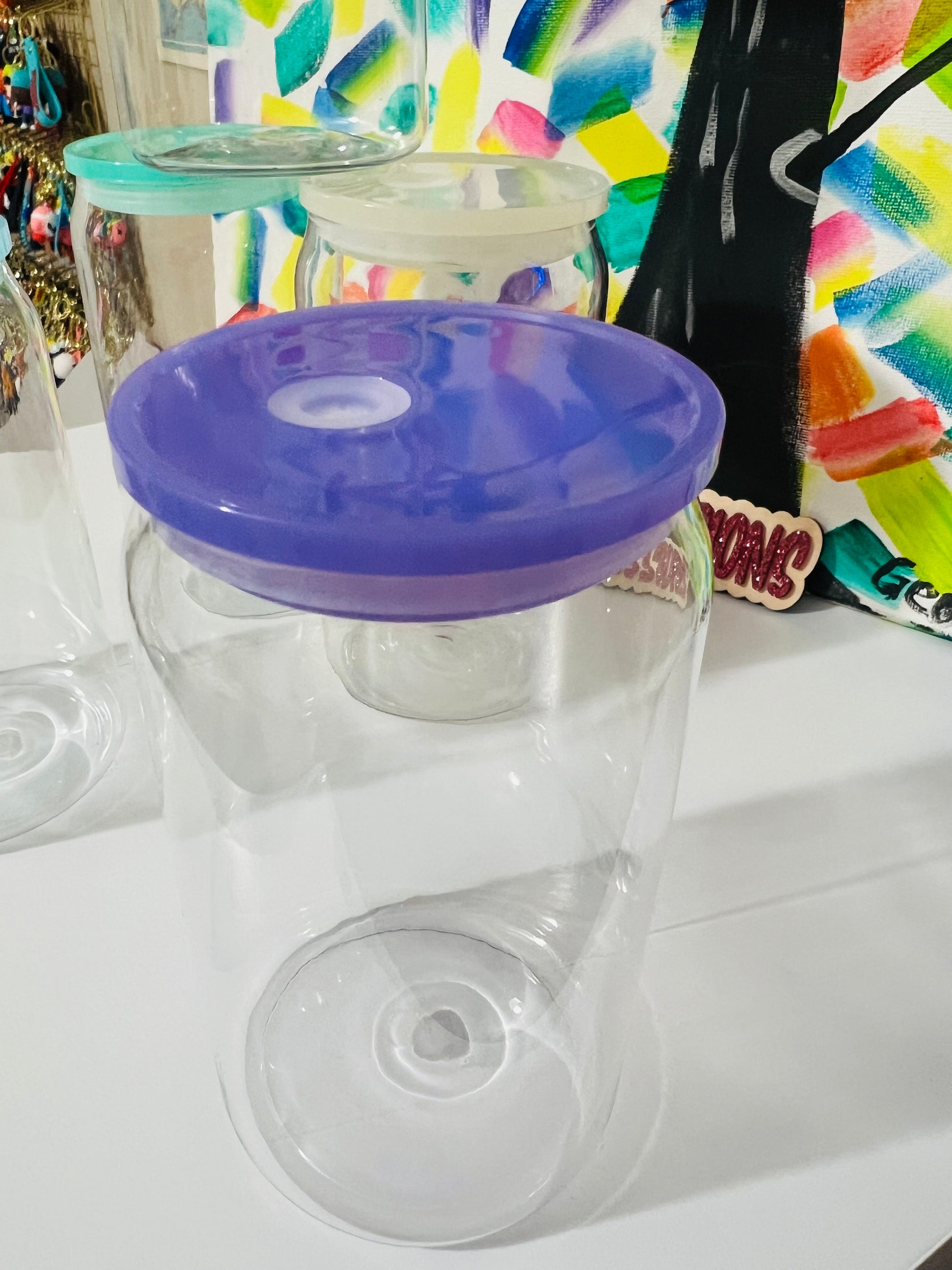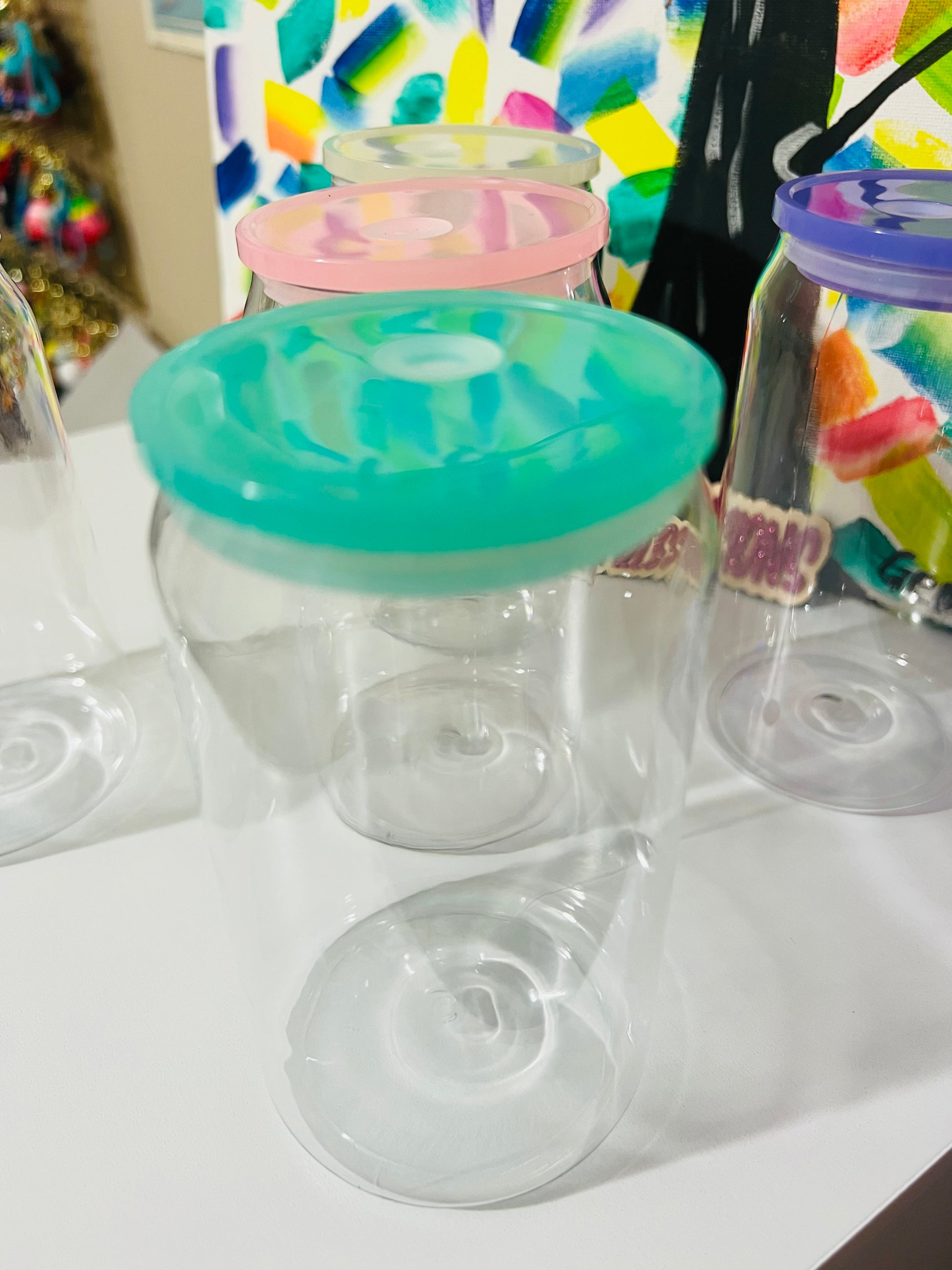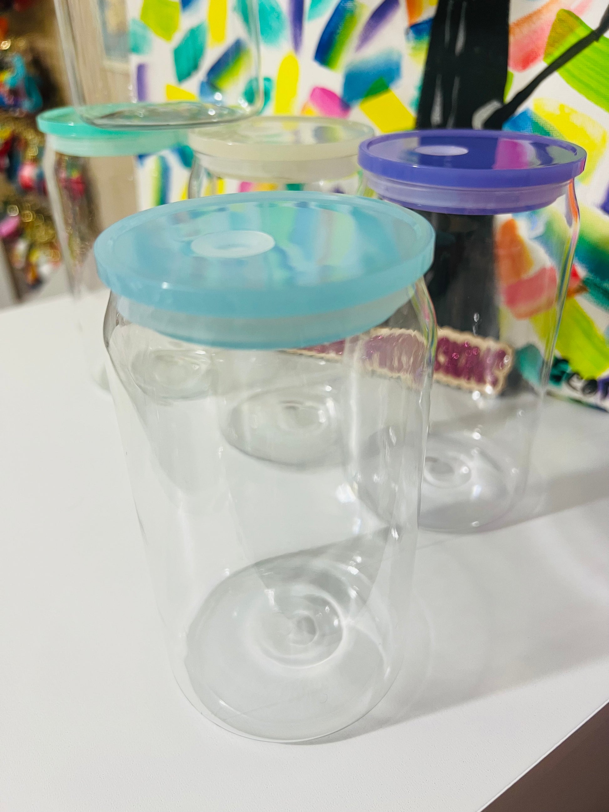 16 oz Clear Plastic Cup & Plastic Straw w/ Colored Lid