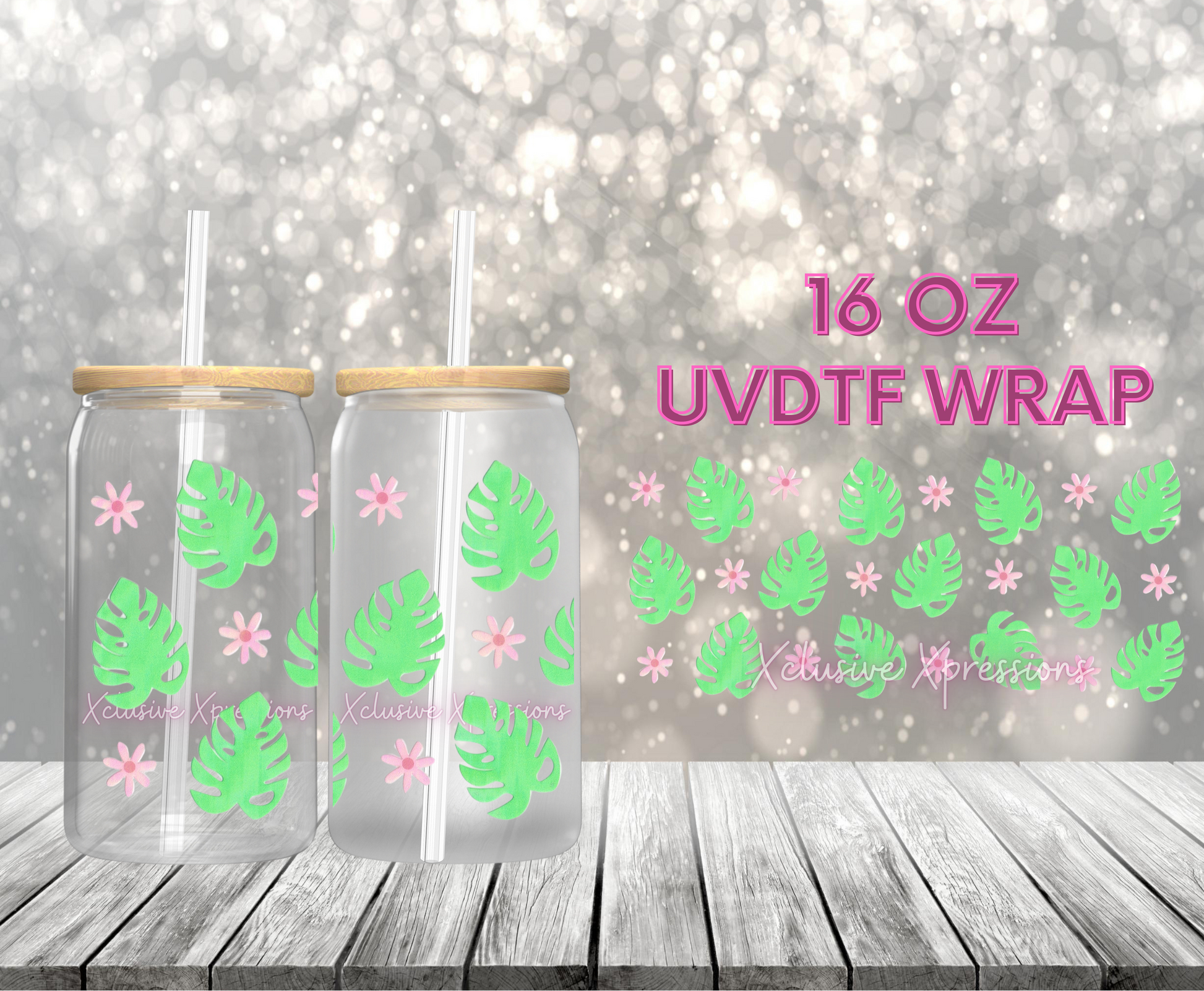 UVDTF cup wrap is sized to fit most 16oz glass cups.