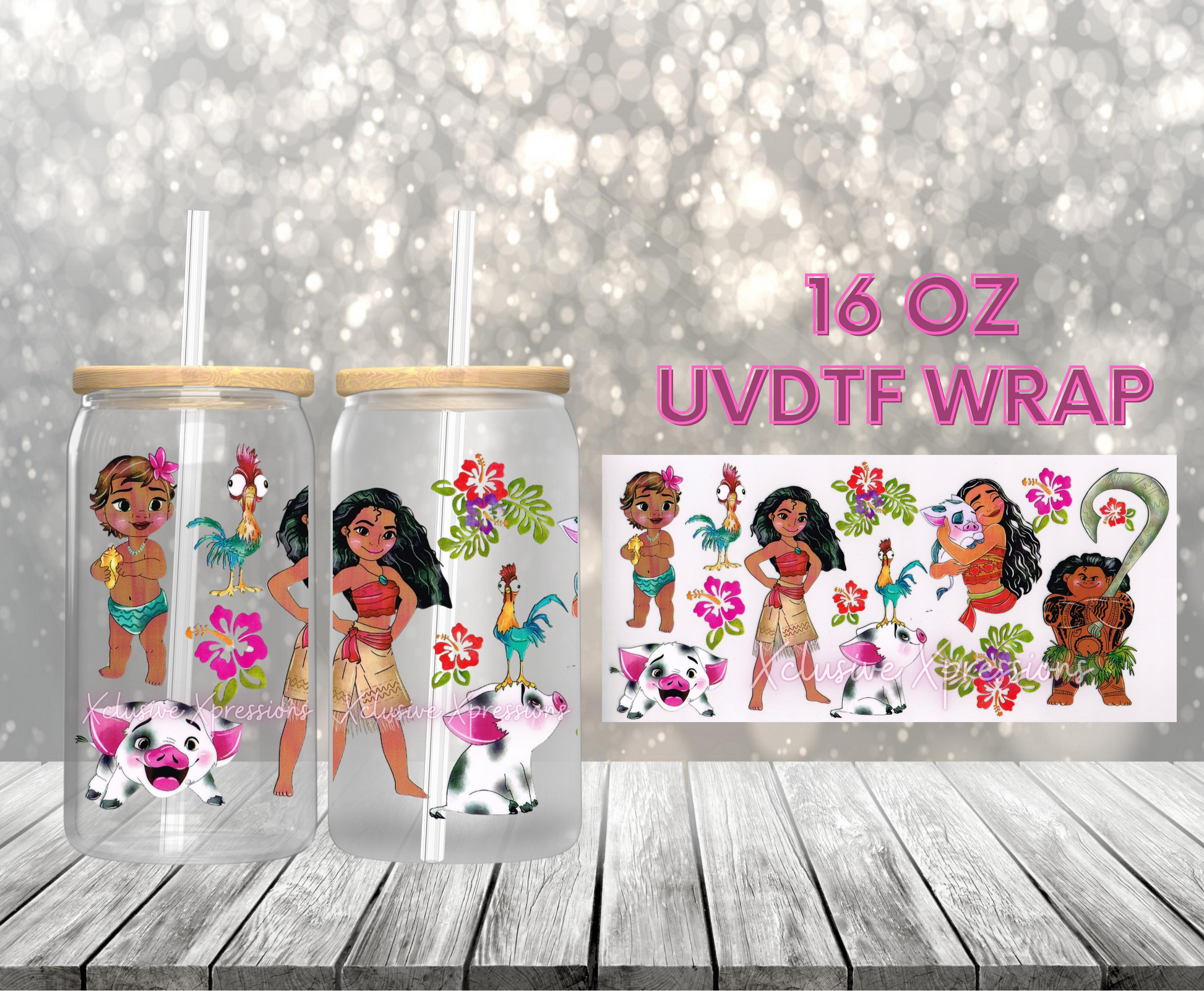UVDTF cup wrap is sized to fit most 16oz glass cups. Wrap size is about 9.4” x 4.3”.