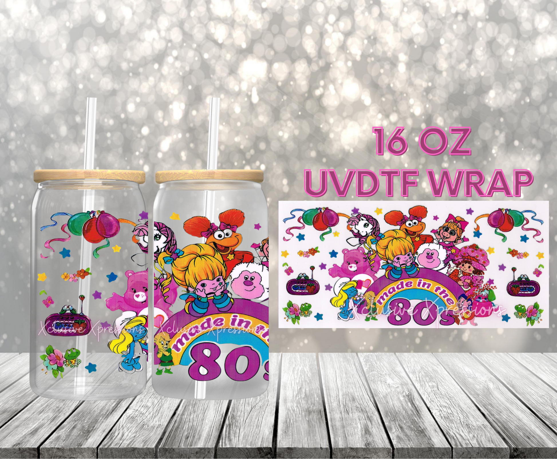 UVDTF cup wrap is sized to fit most 16oz glass cups. Wrap size is about 9.4” x 4.3”.
