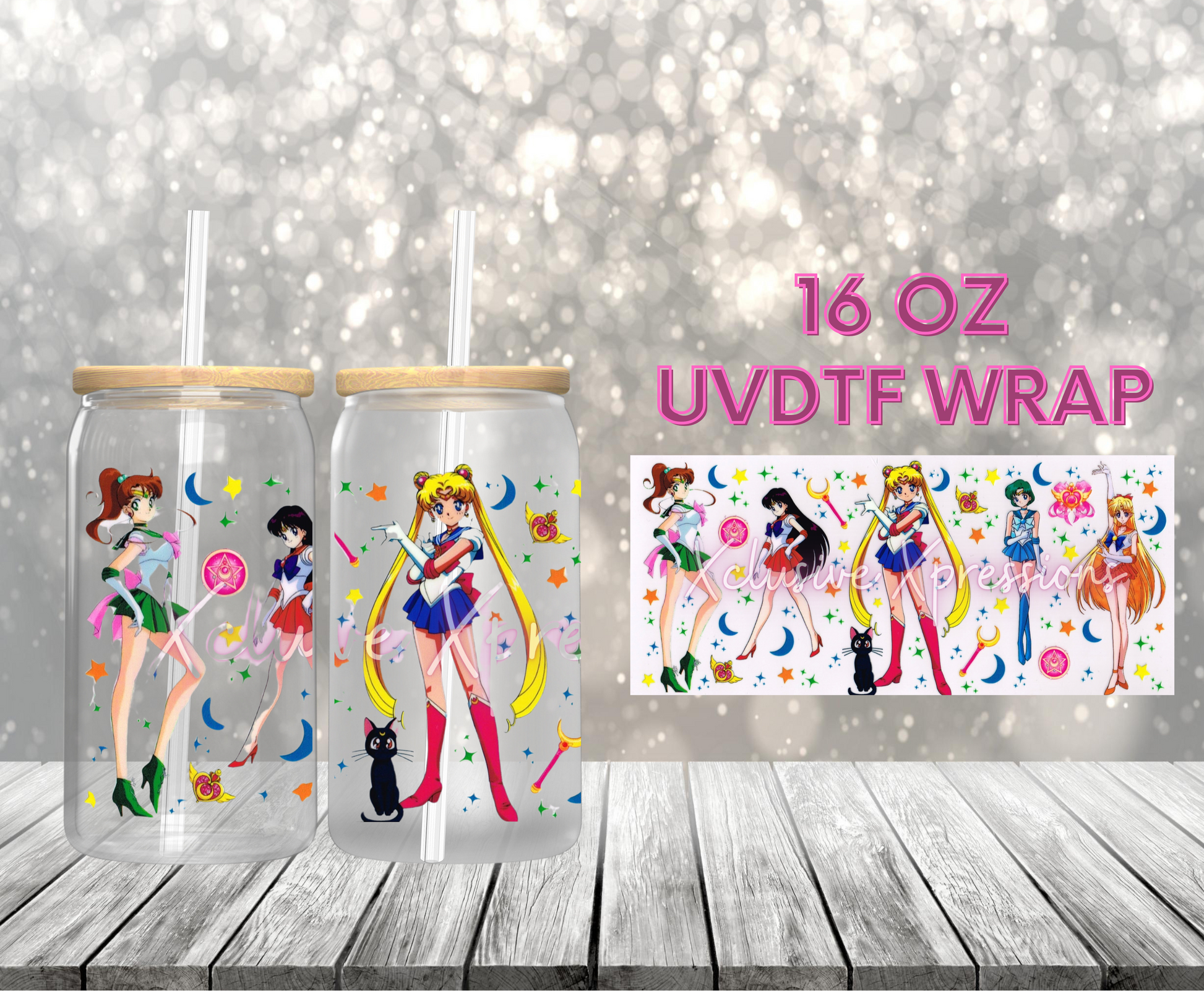 UVDTF cup wrap is sized to fit most 16oz glass cups. Wrap size is about 9.4” x 4.3”.