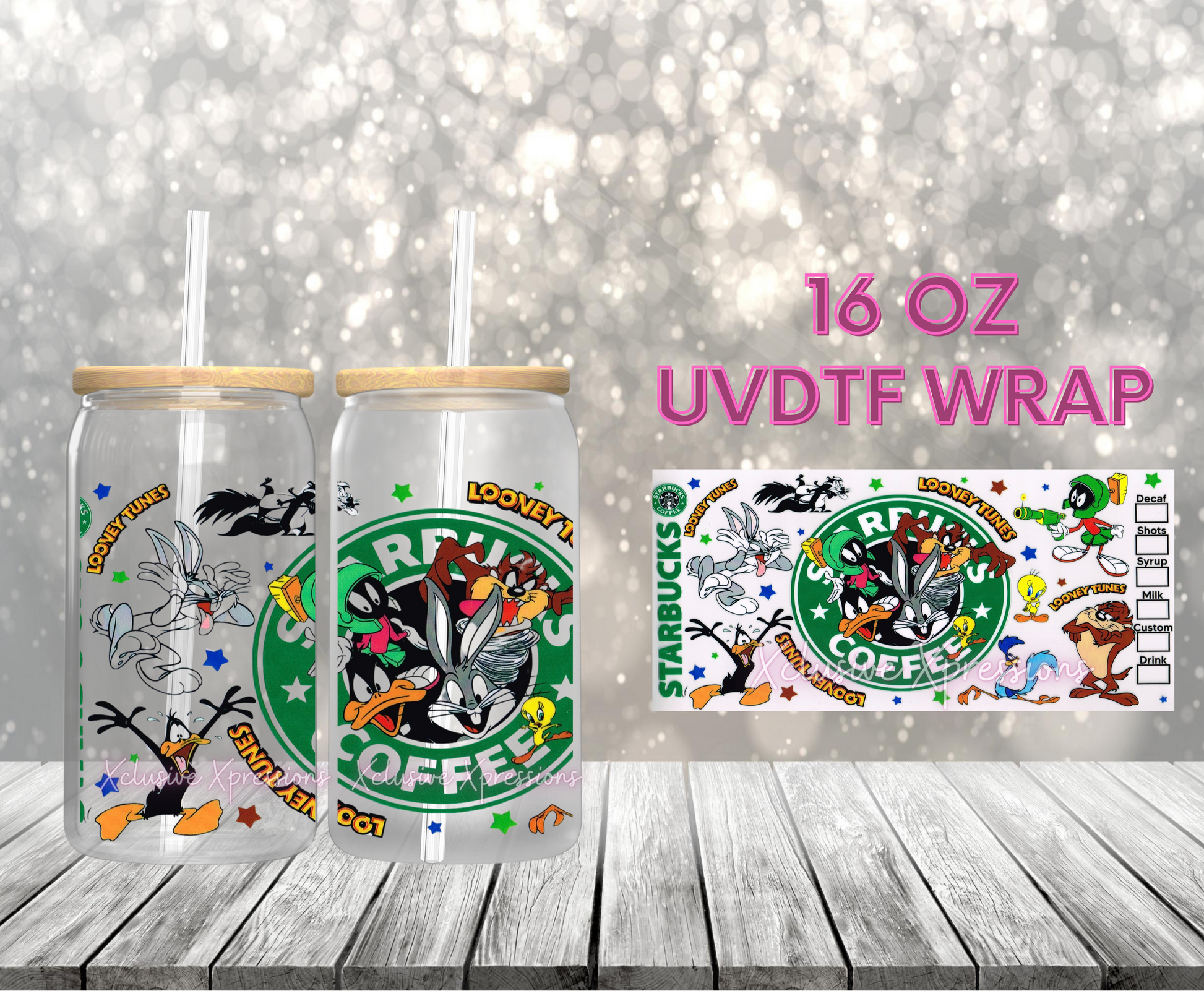 UVDTF cup wrap is sized to fit most 16oz glass cups. Wrap size is about 9.4” x 4.3”.