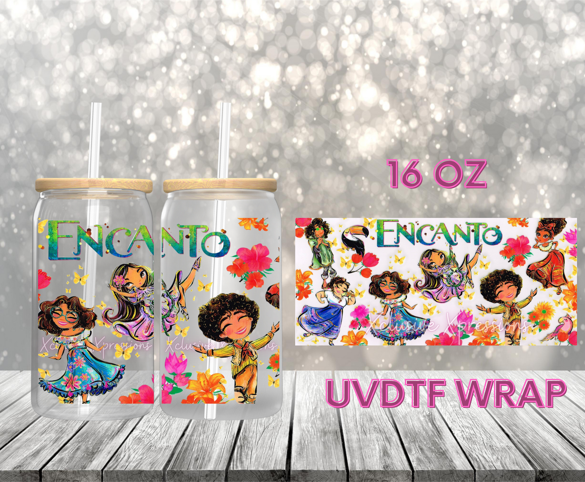 UVDTF cup wrap is sized to fit most 16oz glass cups. Wrap size is about 9.4” x 4.3”.