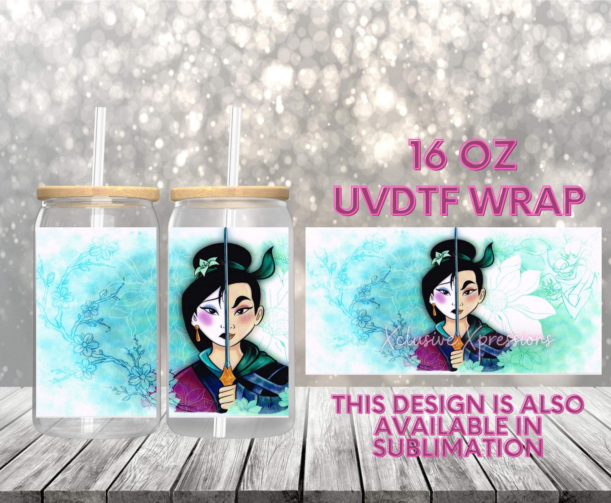 UVDTF cup wrap is sized to fit most 16oz glass cups. Wrap size is about 9.4” x 4.3”.