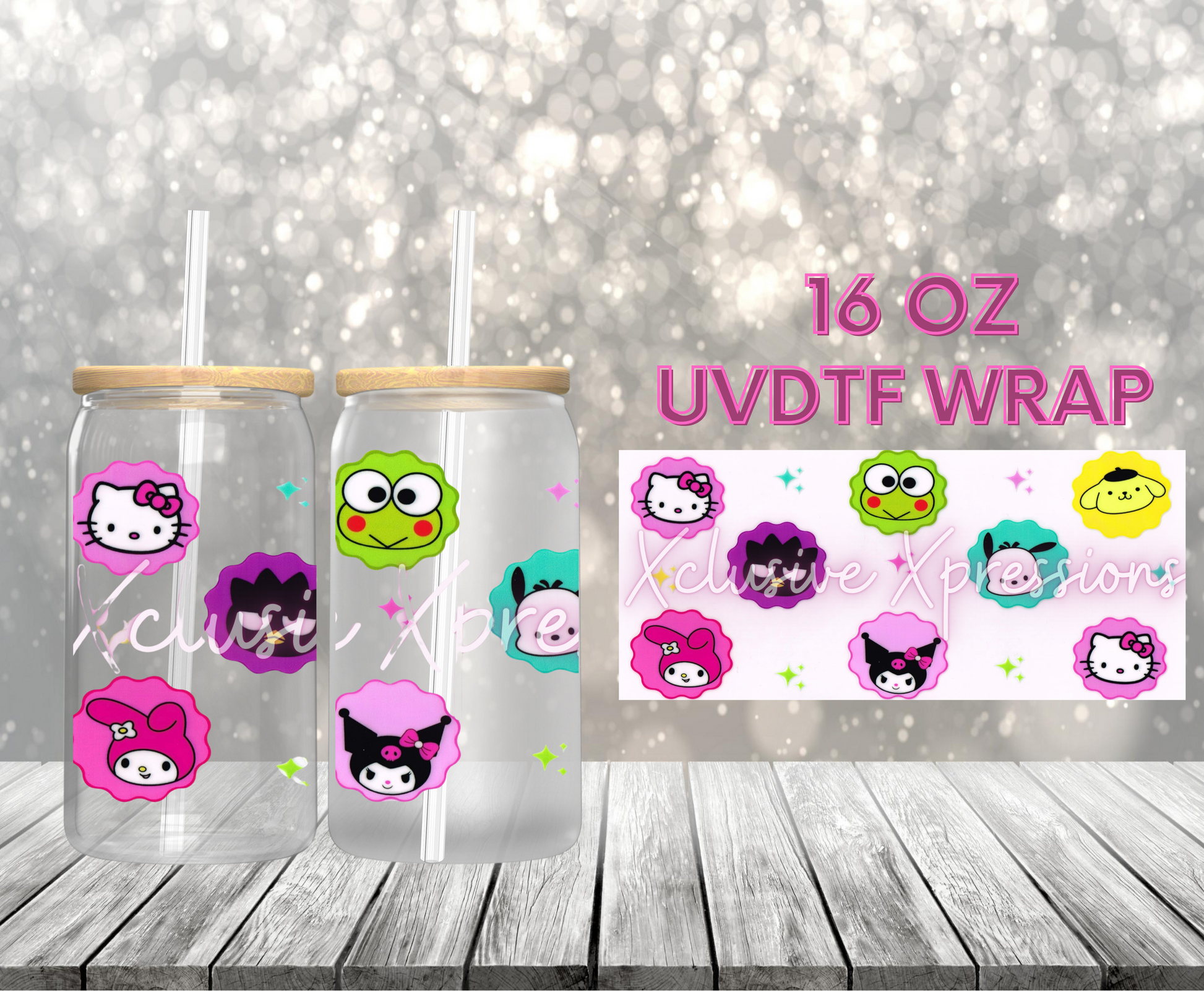 UVDTF cup wrap is sized to fit most 16oz glass cups. Wrap size is about 9.4” x 4.3”.
