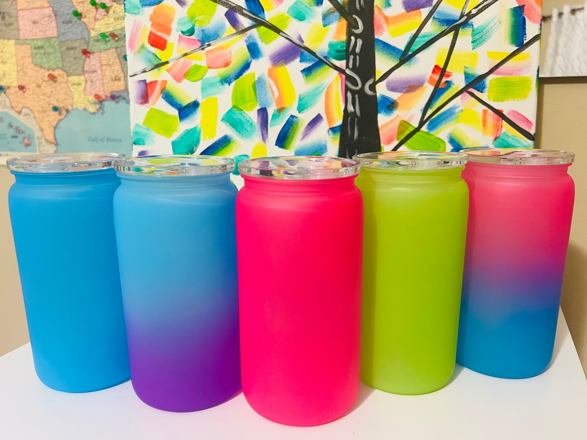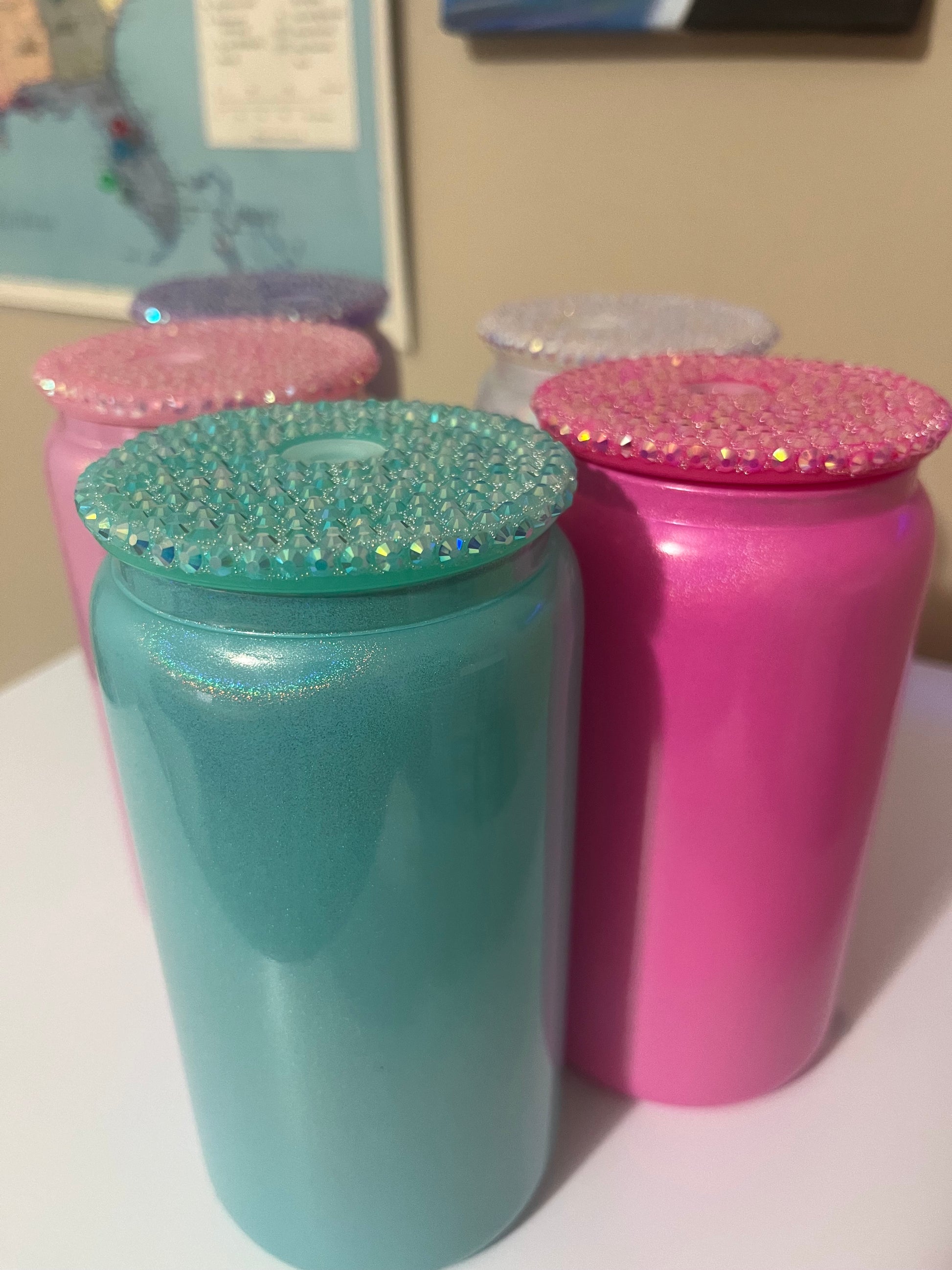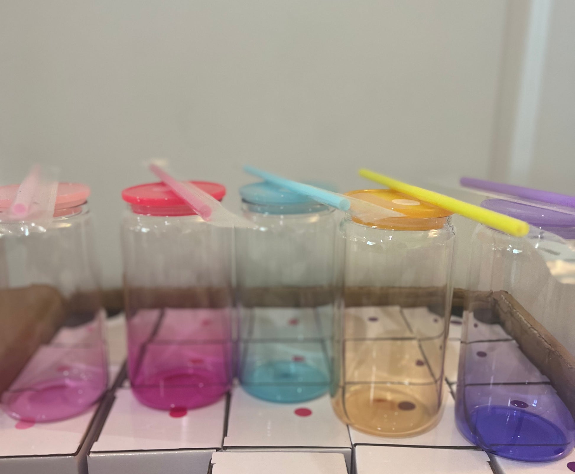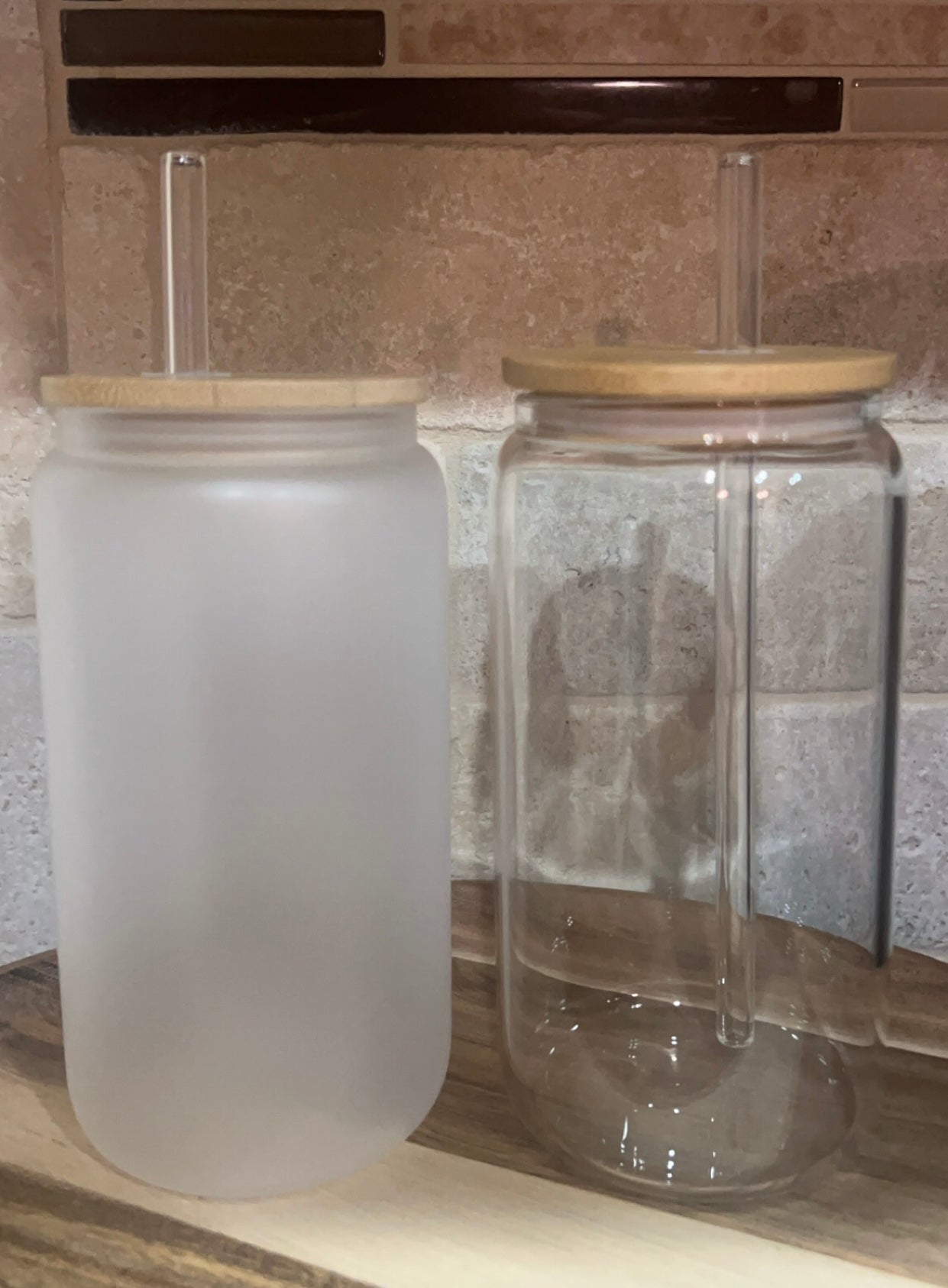 Los frascos de vidrio de 16 oz vienen con una tapa de bambú y una pajita de vidrio o plástico reutilizable. Perfecto para café helado o jugo para adultos :) ¡¡ENVOLTURA INCLUIDA!!