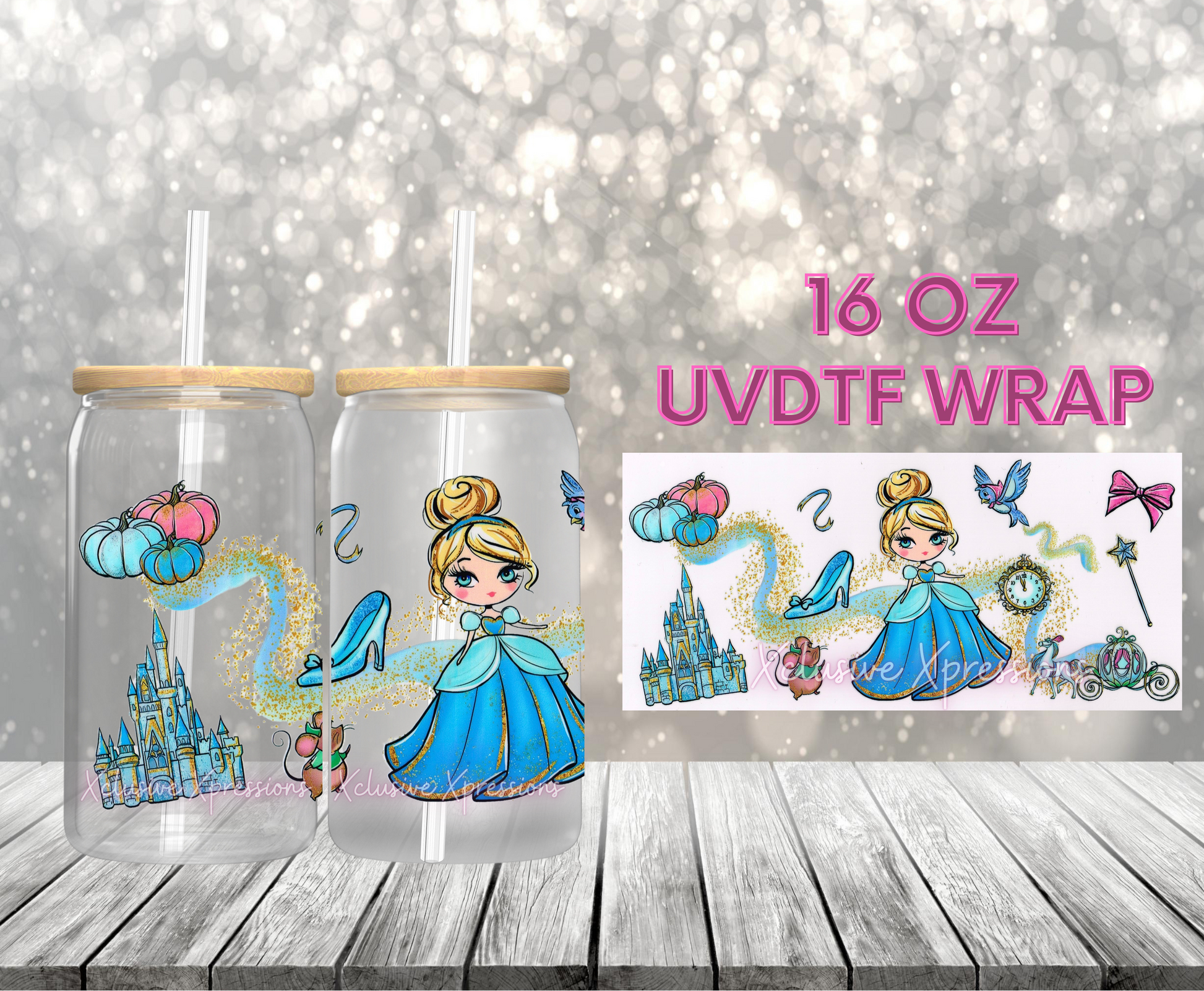UVDTF cup wrap is sized to fit most 16oz glass cups.