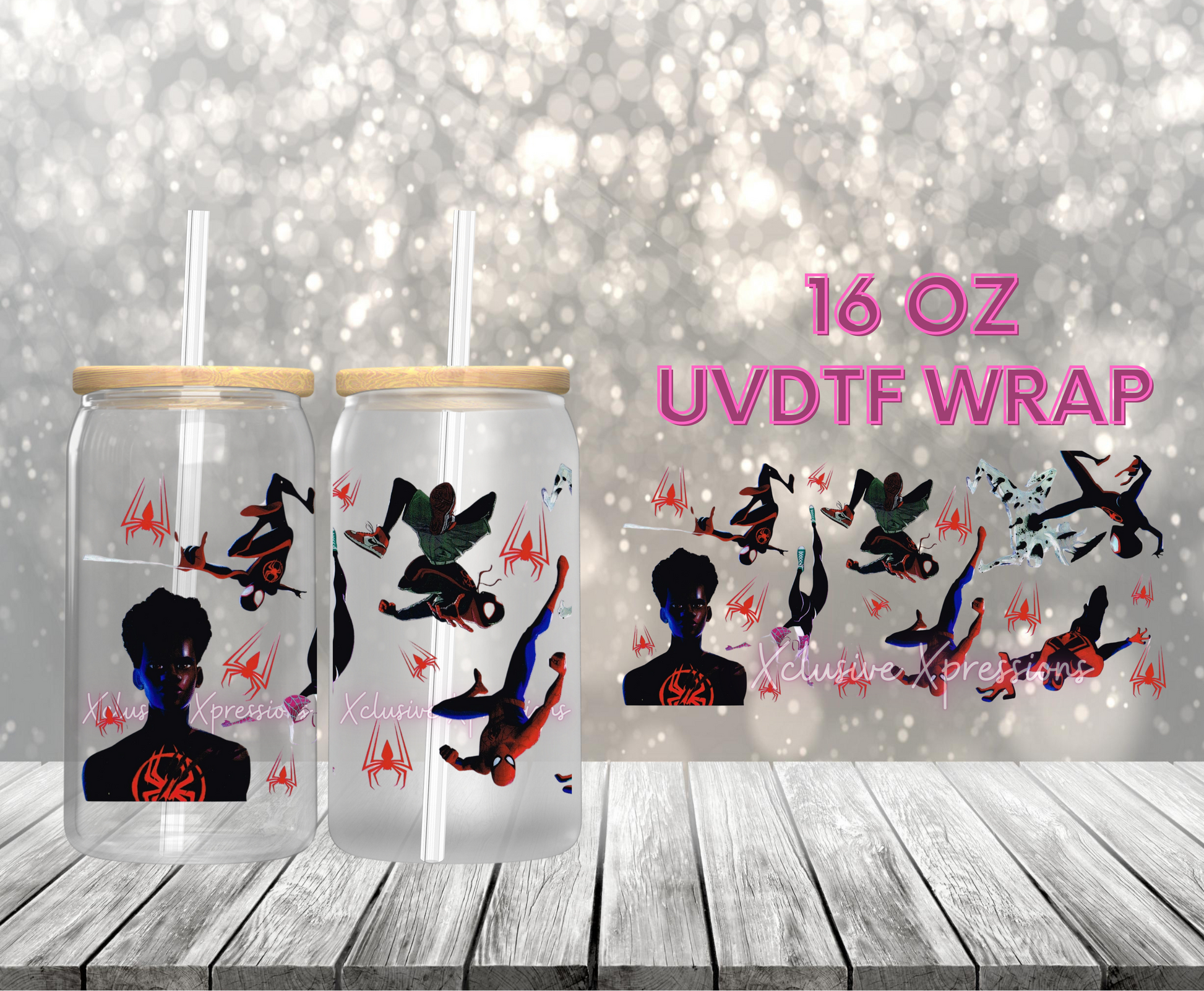 UVDTF cup wrap is sized to fit most 16oz glass cups. Wrap size is about 9.4” x 4.3”.