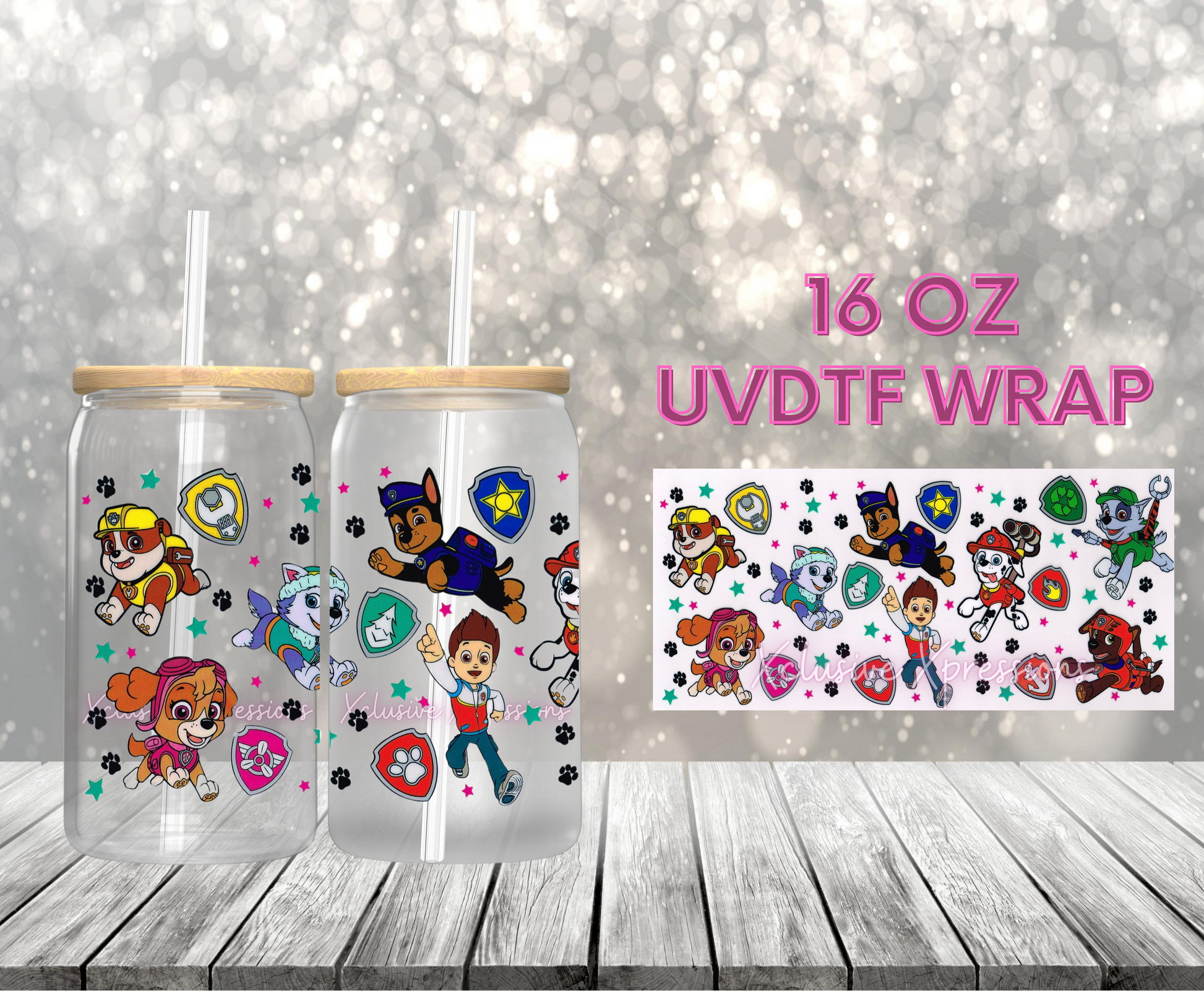 UVDTF cup wrap is sized to fit most 16oz glass cups. Wrap size is about 9.4” x 4.3”.
