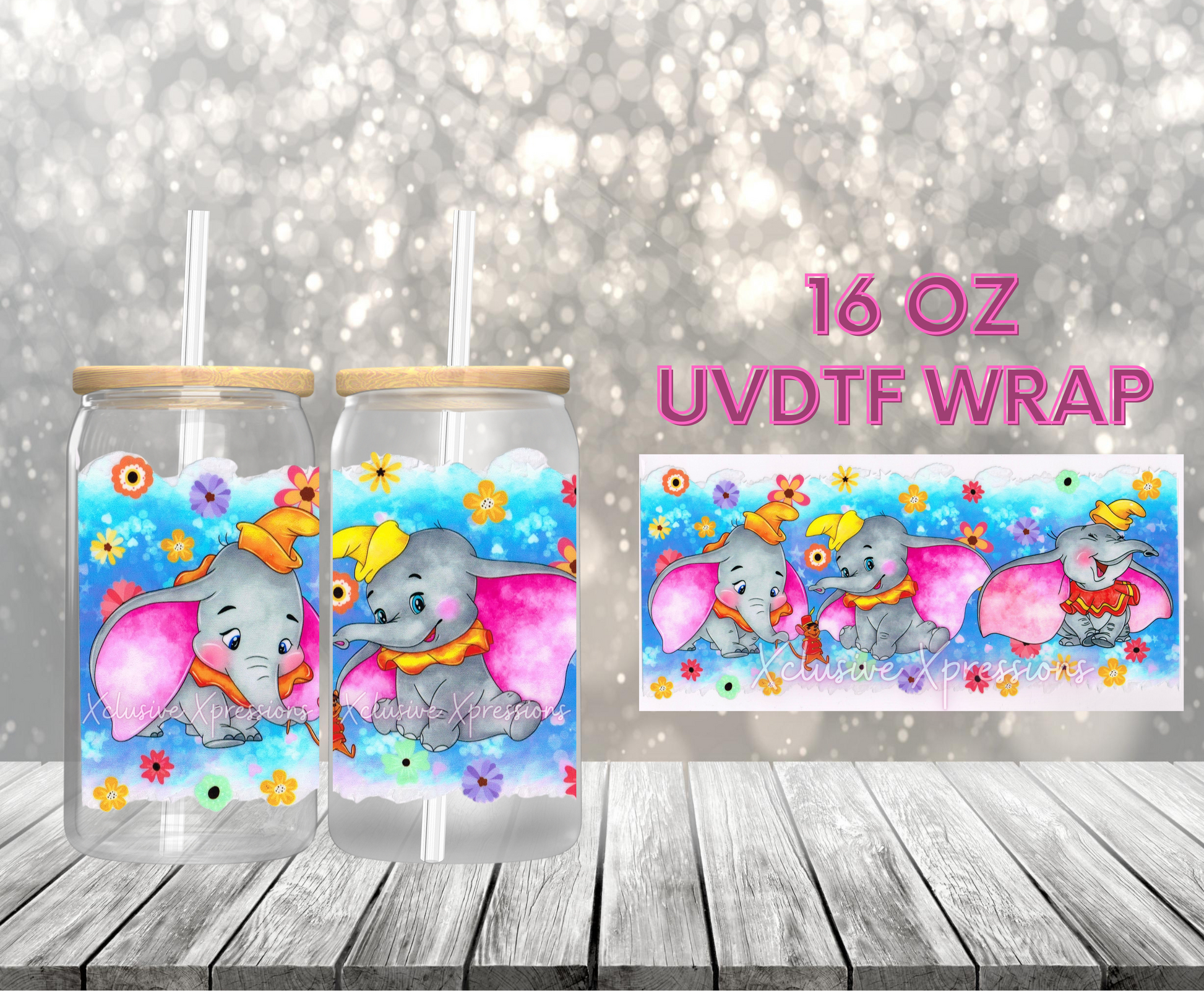 UVDTF cup wrap is sized to fit most 16oz glass cups. Wrap size is about 9.4” x 4.3”.
