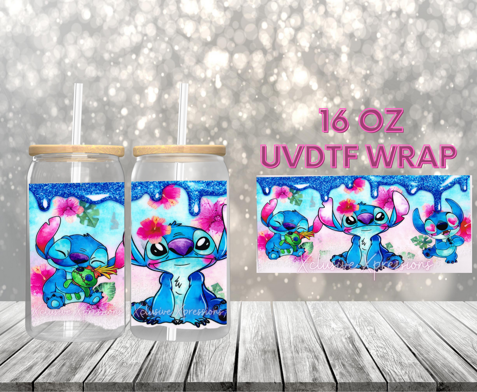 UVDTF cup wrap is sized to fit most 16oz glass cups. Wrap size is about 9.4” x 4.3”.