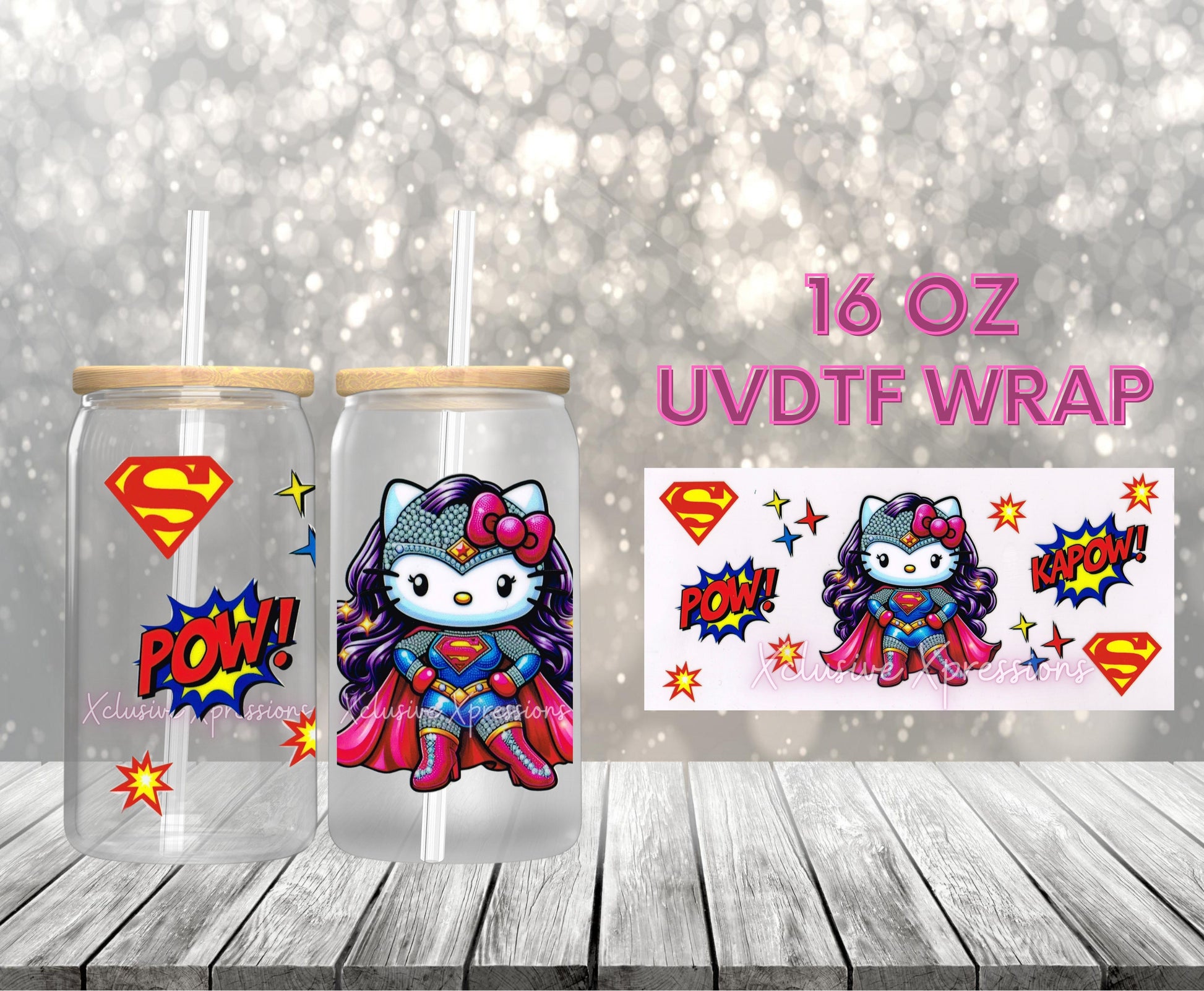 UVDTF cup wrap is sized to fit most 16oz glass cups. Wrap size is about 9.4” x 4.3”.
