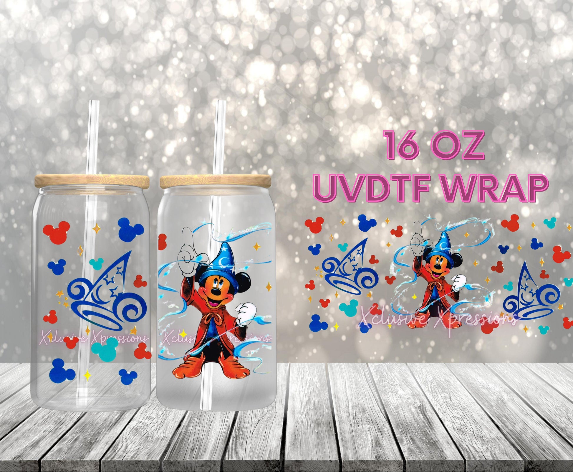 UVDTF cup wrap is sized to fit most 16oz glass cups. Wrap size is about 9.4” x 4.3”.