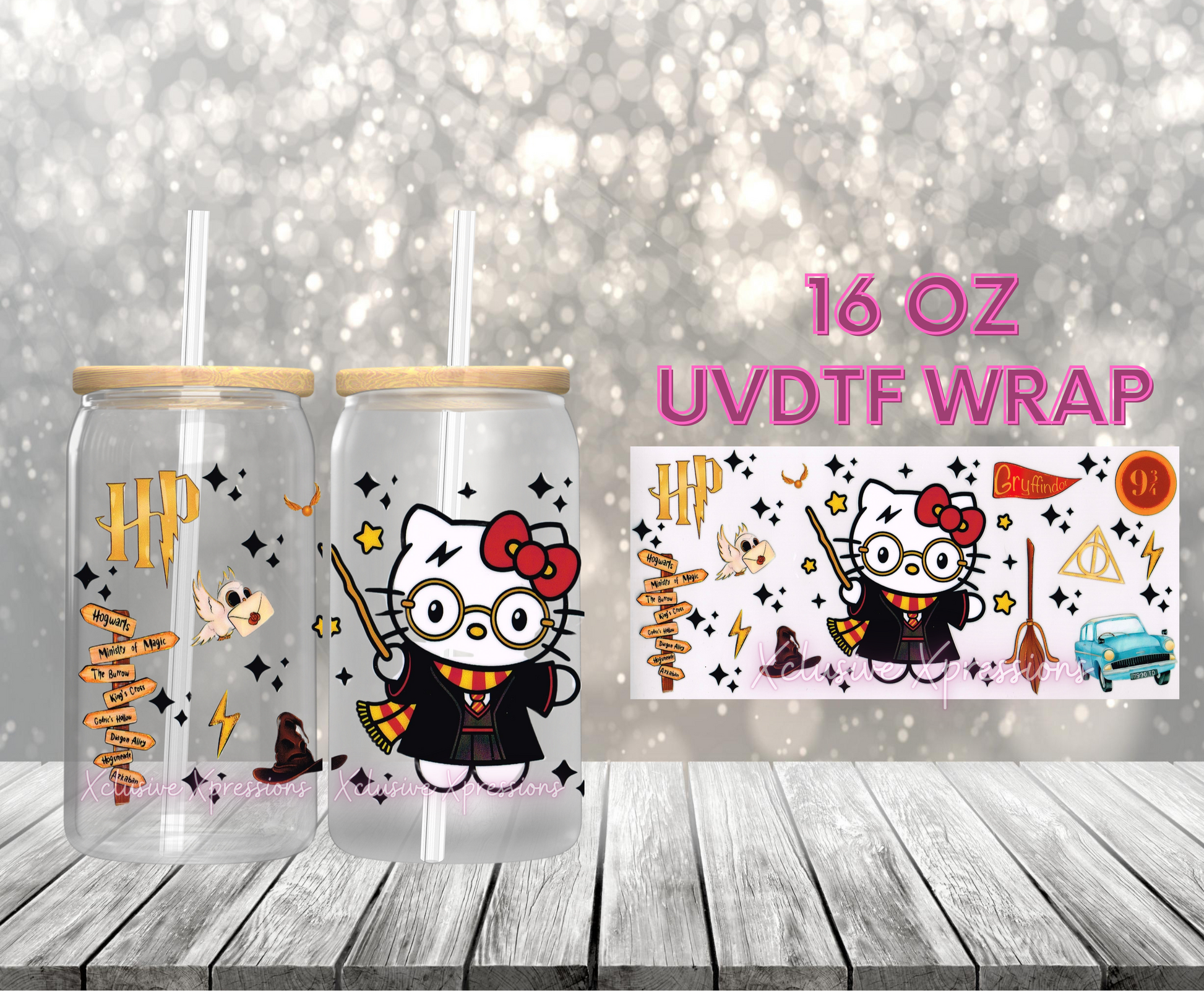 UVDTF cup wrap is sized to fit most 16oz glass cups. Wrap size is about 9.4” x 4.3”.