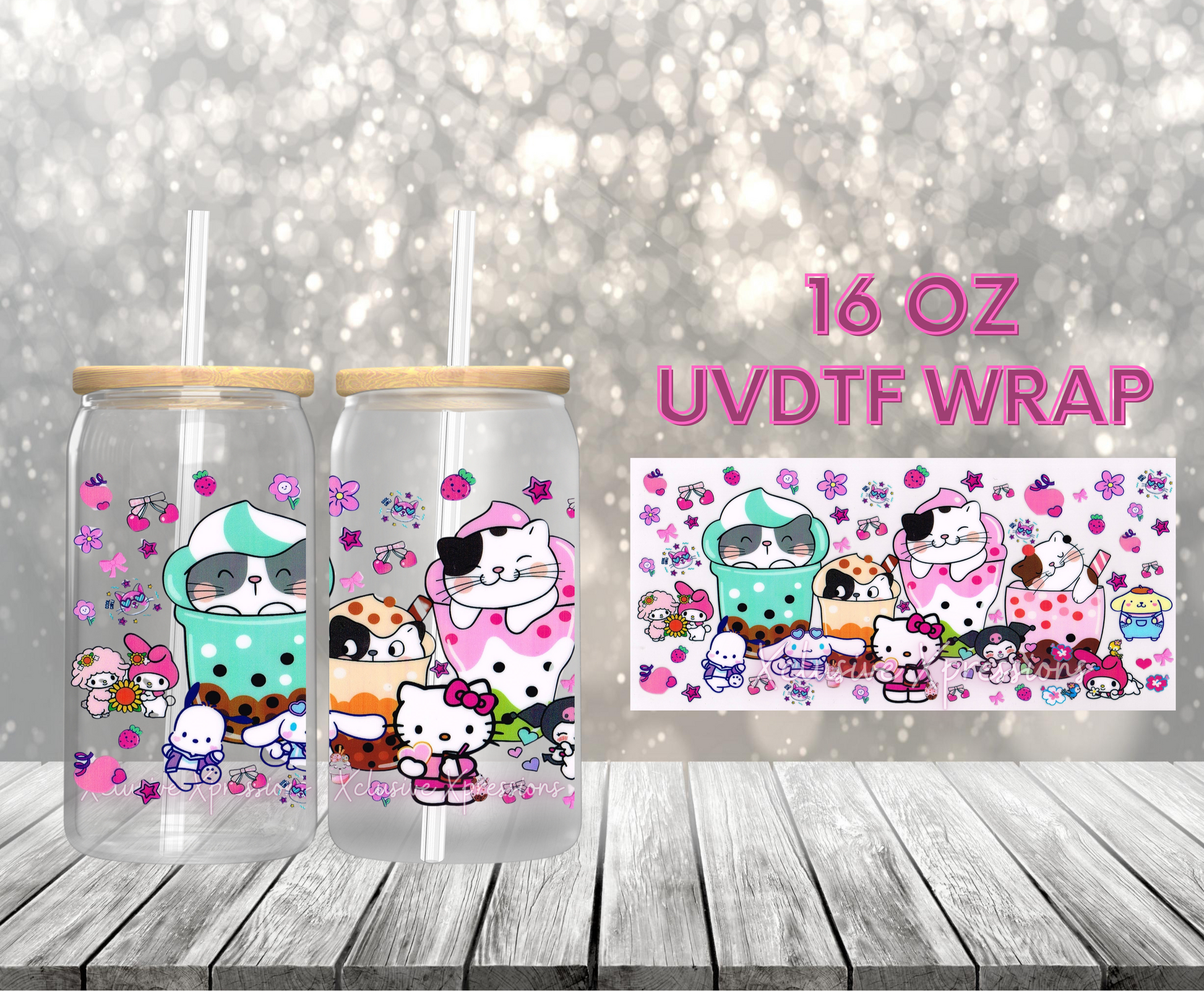 UVDTF cup wrap is sized to fit most 16oz glass cups. Wrap size is about 9.4” x 4.3”.