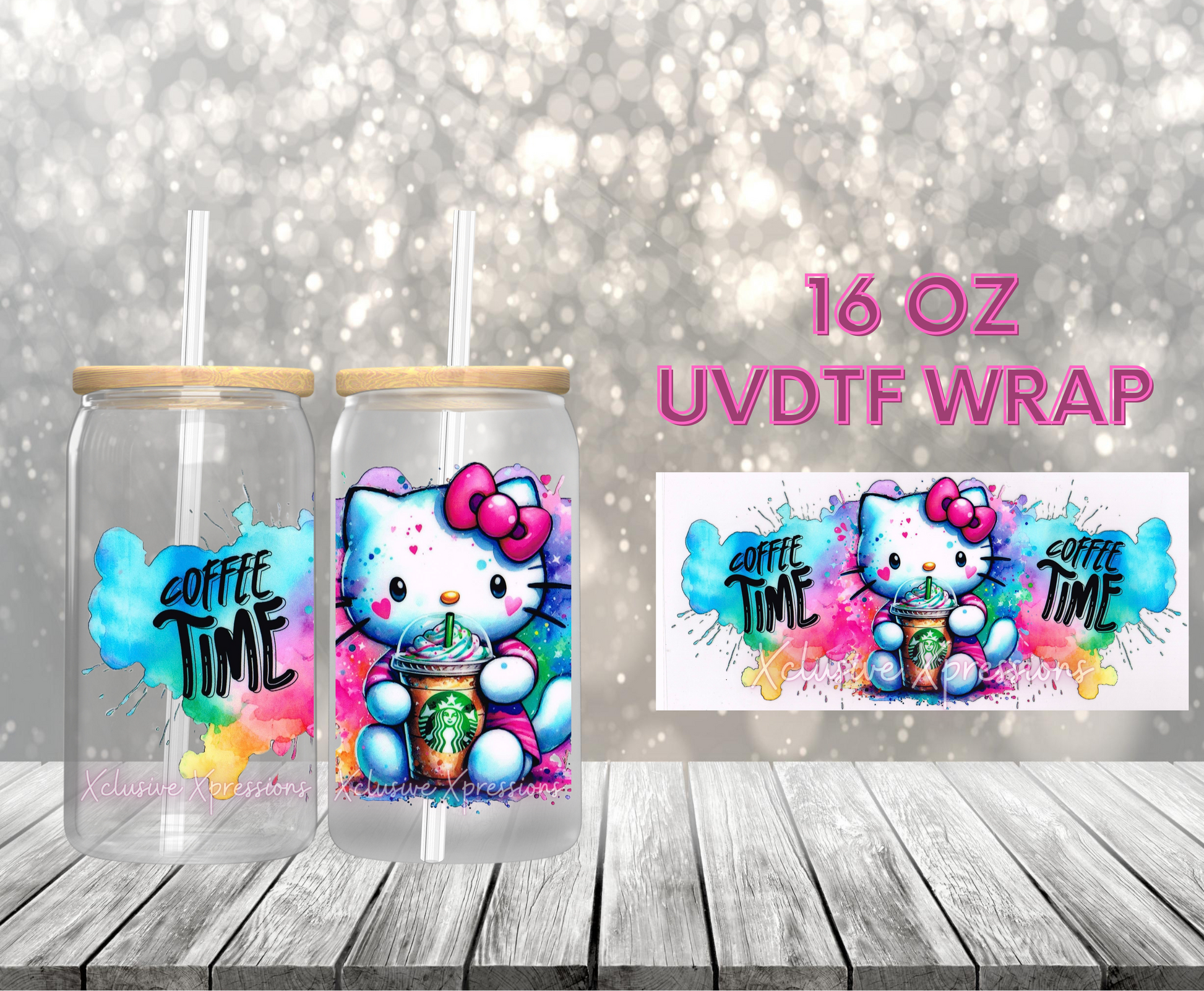 UVDTF cup wrap is sized to fit most 16oz glass cups. Wrap size is about 9.4” x 4.3”.