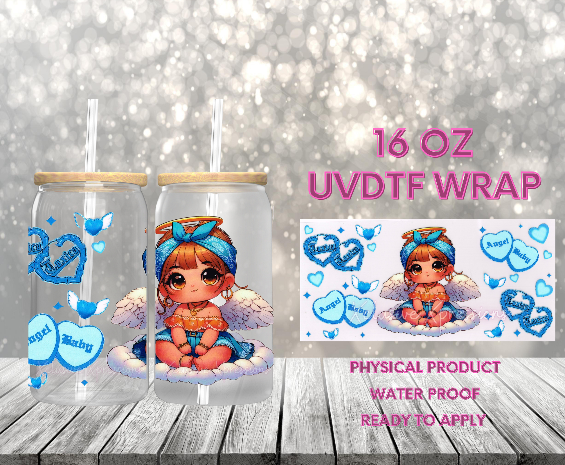 UVDTF cup wrap is sized to fit most 16oz glass cups. Wrap size is about 9.4” x 4.3”.