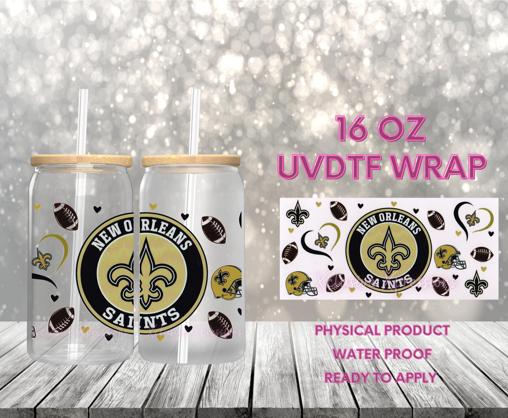 UVDTF cup wrap is sized to fit most 16oz glass cups. Wrap size is about 9.4” x 4.3”.