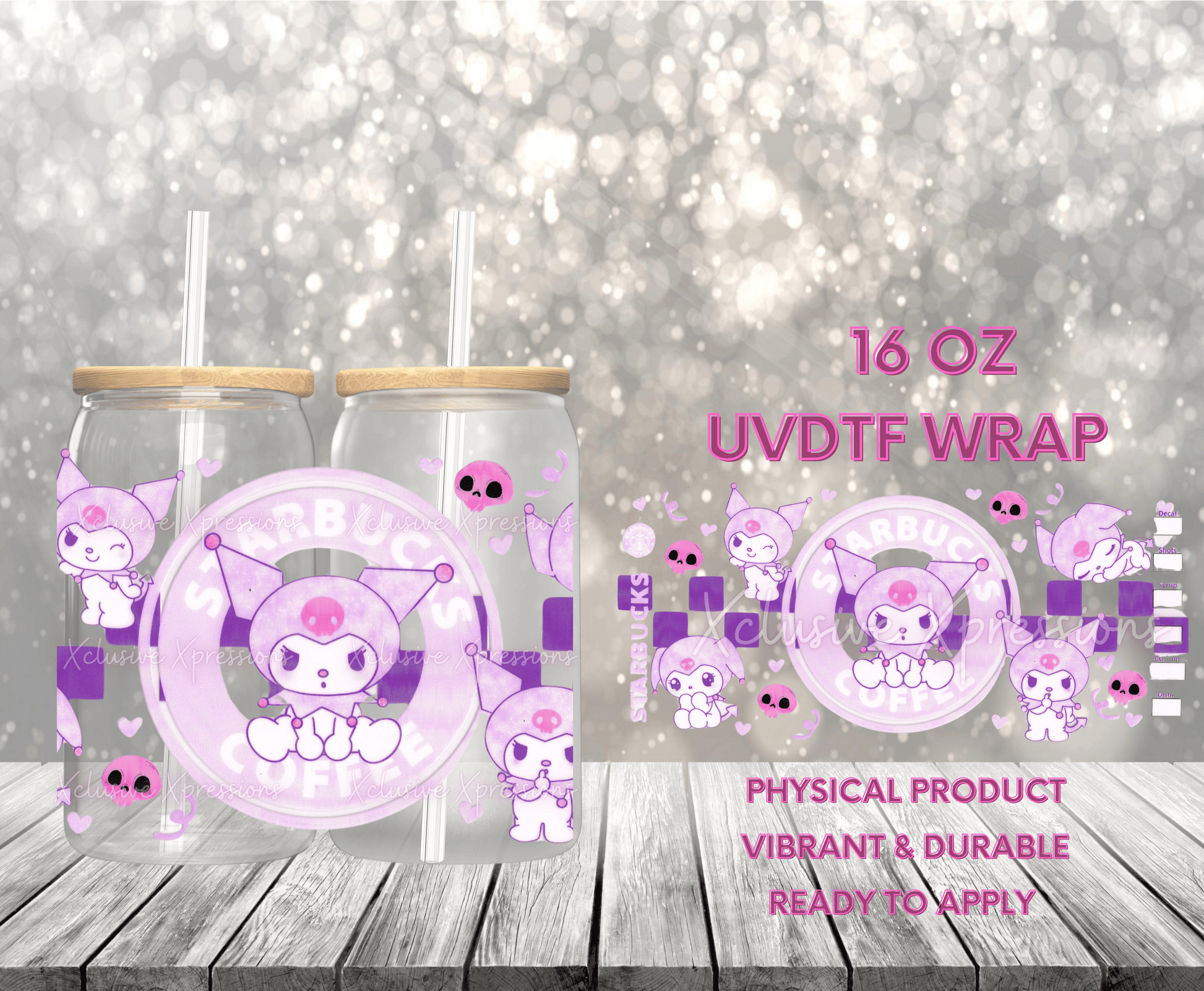 UVDTF cup wrap is sized to fit most 16oz glass cups. Wrap size is about 9.4” x 4.3”.