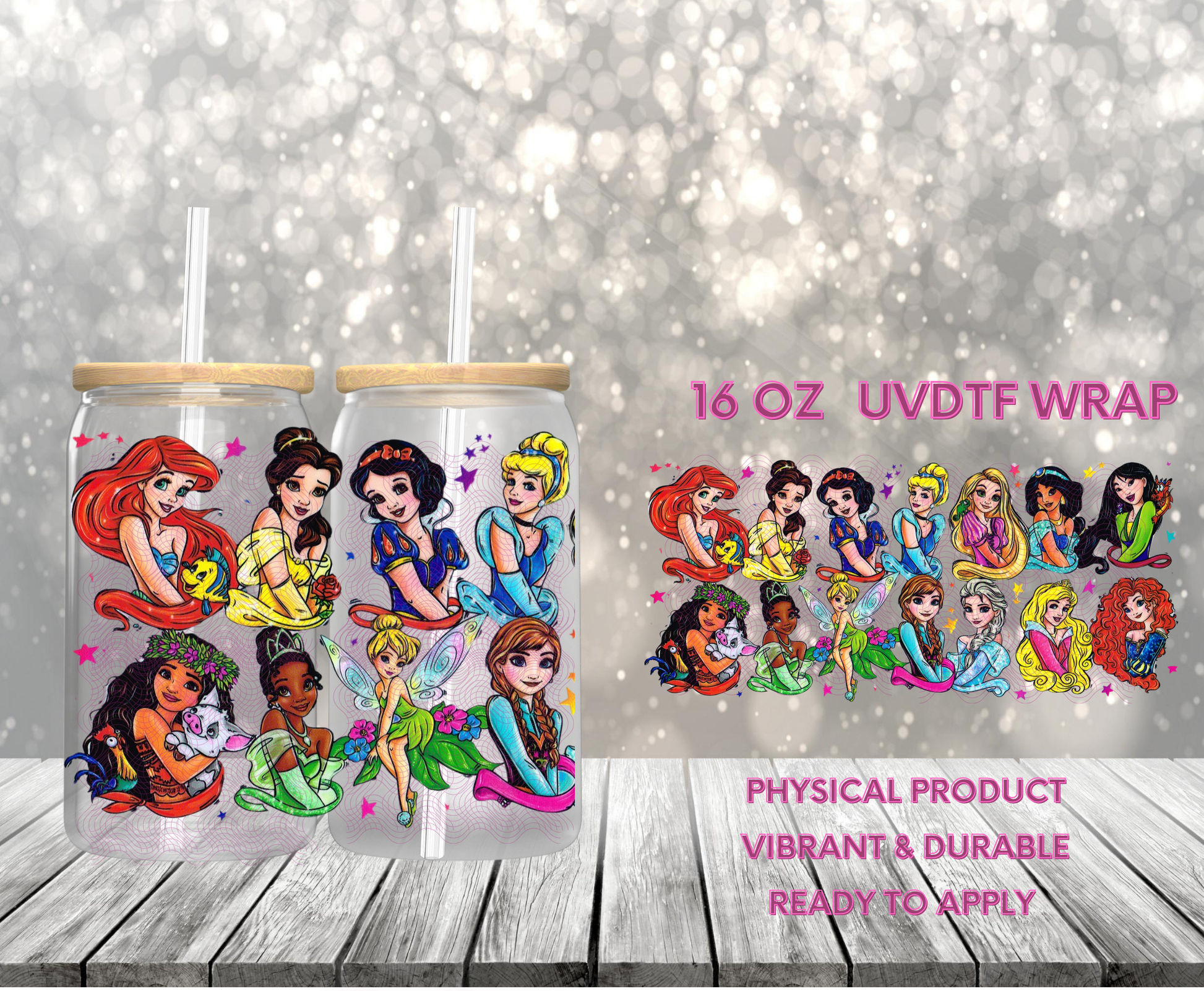 UVDTF cup wrap is sized to fit most 16oz glass cups. Wrap size is about 9.4” x 4.3”.