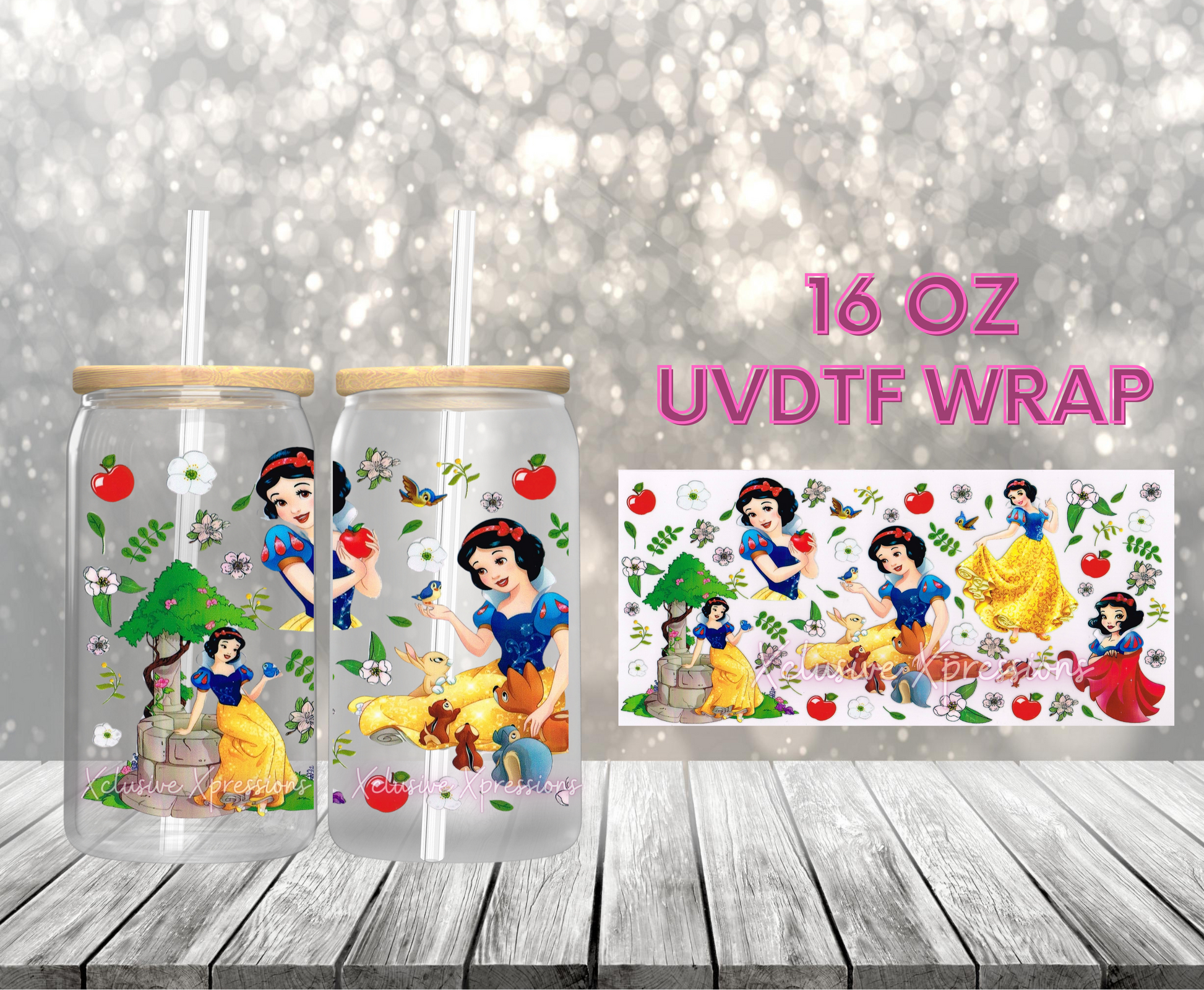 UVDTF cup wrap is sized to fit most 16oz glass cups. Wrap size is about 9.4” x 4.3”.