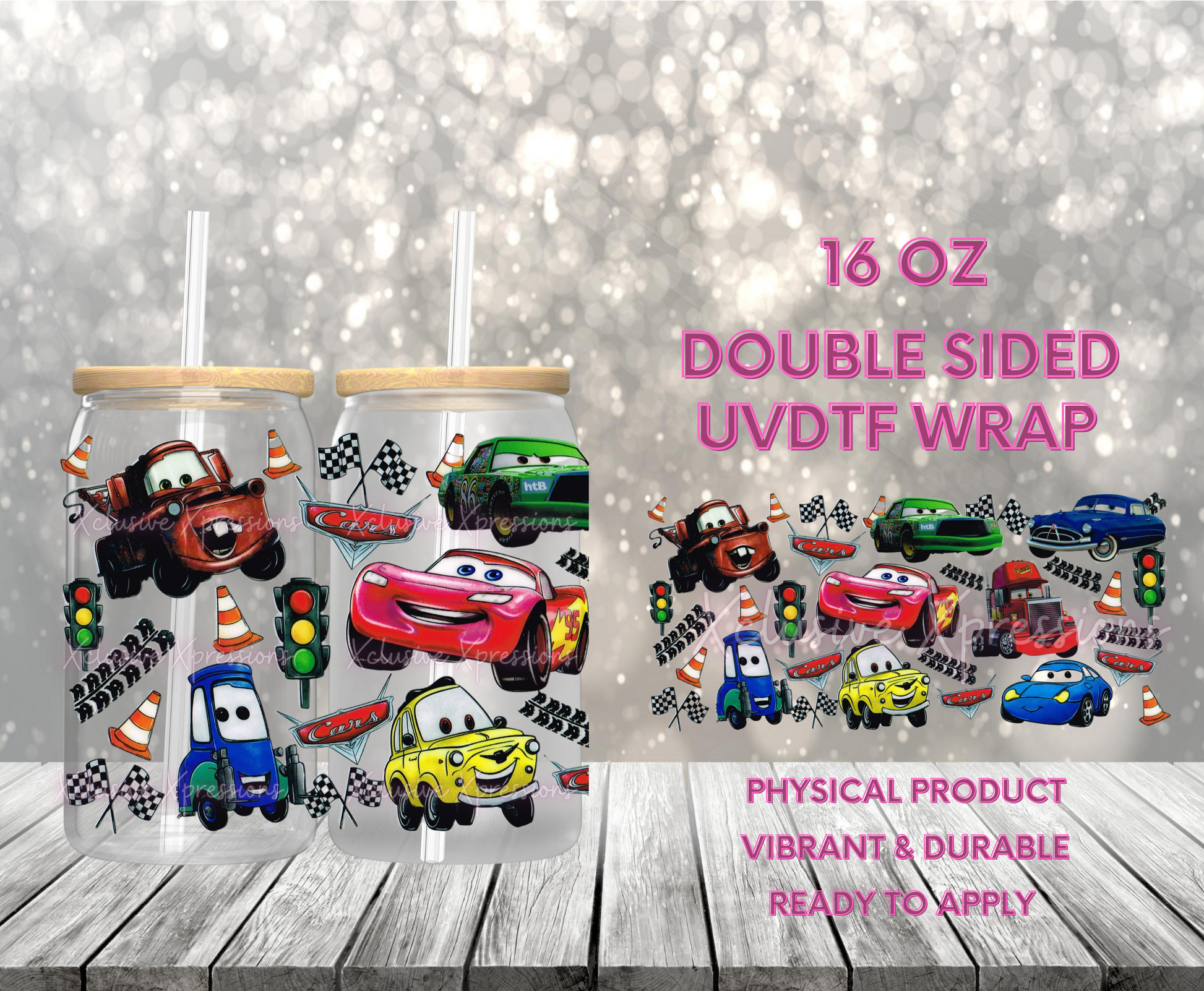 UVDTF cup wrap is sized to fit most 16oz glass cups. Wrap size is about 9.4” x 4.3”.