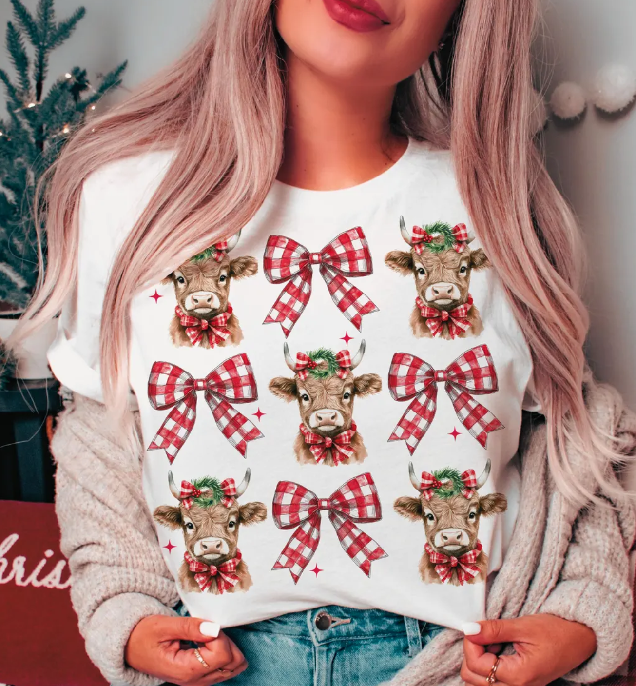 Highland Cow Bow, Glitter Screenprint