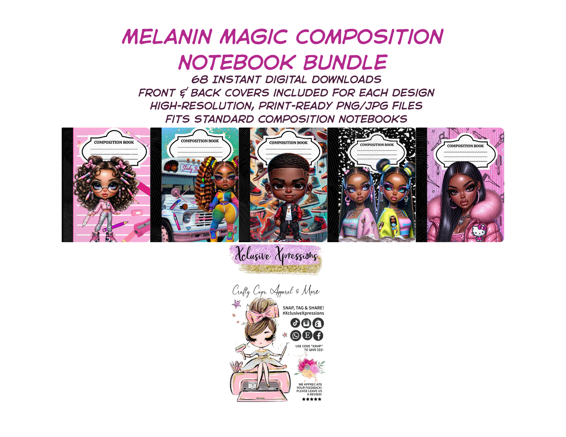Melanin Magic Composition Notebook Cover Collection, 68 Digital PNGs